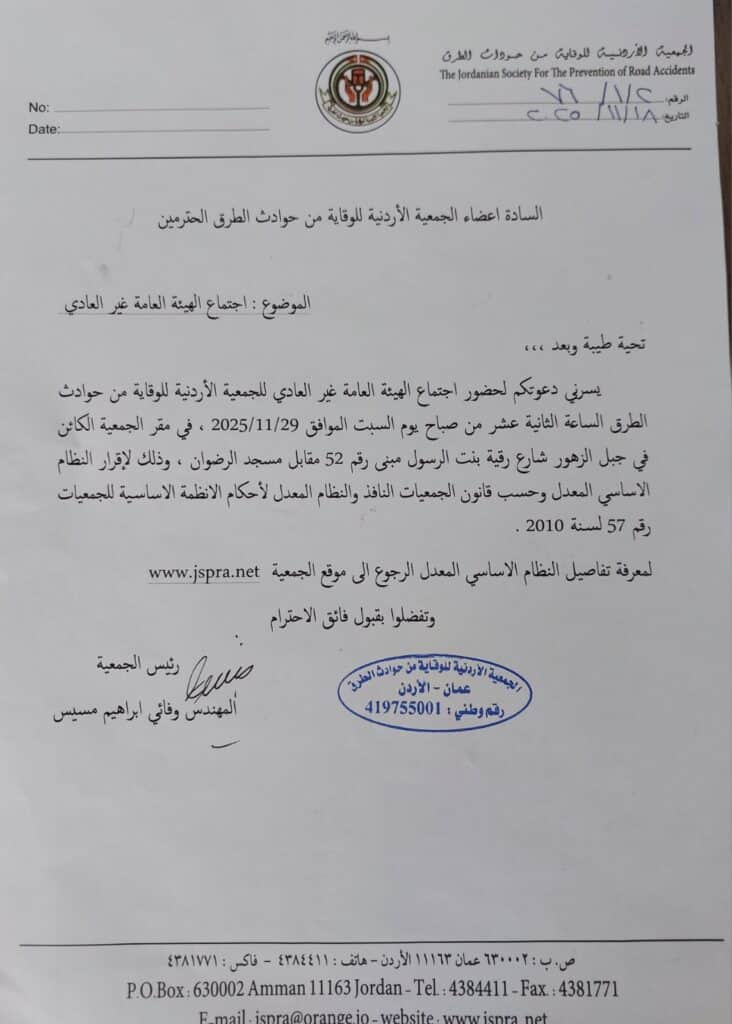 السادة اعضاء الجمعية الاردنية للوقاية من حوادث الطرق